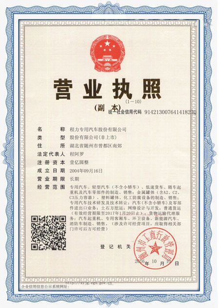 程力專(zhuān)用汽車(chē)股份有限公司各類(lèi)專(zhuān)用汽車(chē)的專(zhuān)業(yè)廠(chǎng)家,大型專(zhuān)用汽車(chē)廠(chǎng)。國(guó)內(nèi)園林綠化、石油化工、市政環(huán)衛(wèi)、壓力容器專(zhuān)用汽車(chē)商。注冊(cè)“程力威”牌,產(chǎn)品代碼:“CLW”。東風(fēng)、解放、福田、重汽、陜汽、北奔等公司的重要合作伙伴,主要從事各類(lèi)專(zhuān)用汽車(chē)的業(yè)務(wù),同時(shí)也銷(xiāo)售各大型廠(chǎng)家的整車(chē)及配件。公司擁有自行出口權(quán),其主導(dǎo)品種有灑水車(chē)系列、吸污(吸糞)車(chē)系列、垃圾車(chē)系列、掃地車(chē)系列、油罐加(運(yùn))油車(chē)系列、高空作業(yè)車(chē)系列、清障車(chē)系列、隨車(chē)吊系列、自卸車(chē)系列、教練車(chē)系列、半掛車(chē)系列、化工車(chē)系列、消防車(chē)系列、廂式(冷藏車(chē))系列、牽引車(chē)系列、粉粒物料車(chē)系列、攪拌車(chē)系列、壓力容器系列、專(zhuān)用車(chē)配件等十八大系列300多個(gè)品種車(chē)型。同時(shí)批發(fā)東風(fēng)、解放、楚風(fēng)各種二類(lèi)底盤(pán)。